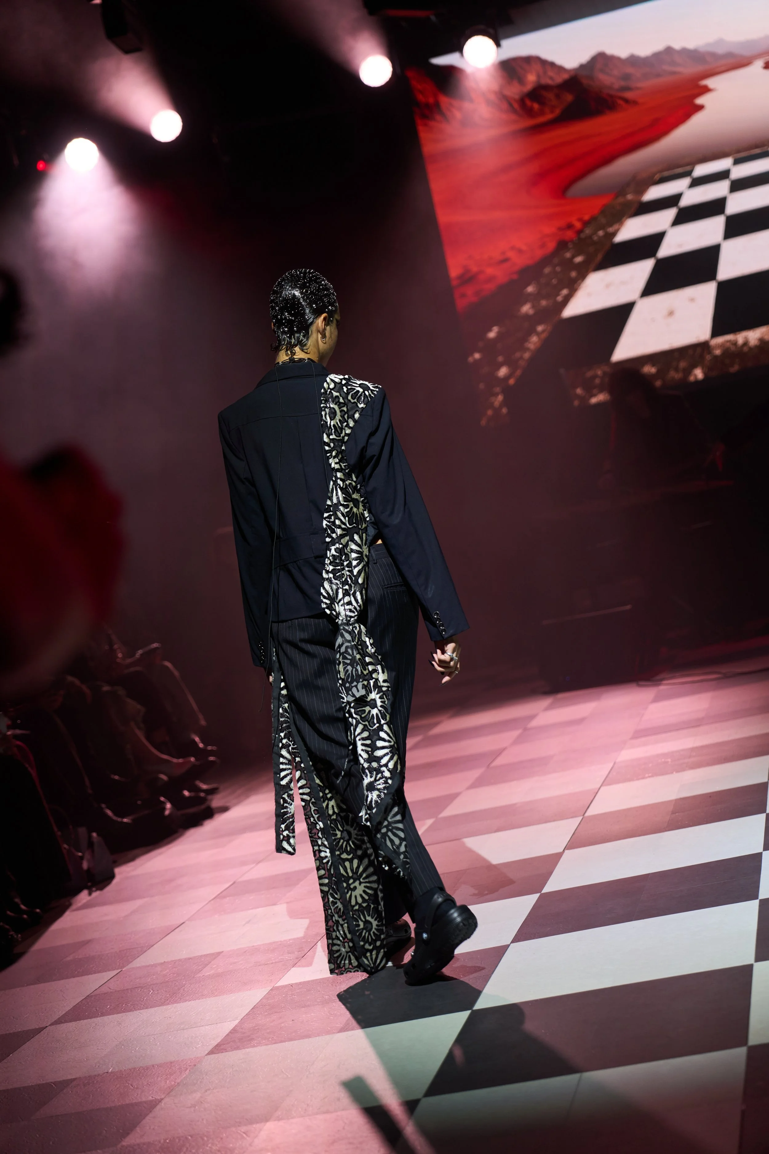 6:30PM SPEED presents a sculptural reimagining of contemporary tailoring, merging sustainability with subversive form. Founded by Alvi Chung, the label is known for its immersive runway environments and material-led approach, blending remnant fabrics with unconventional luxury.